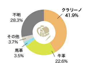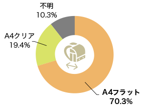サイズでは、「A4フラットサイズ」が70%と大多数を占めていました。素材については、42%がクラリーノで、牛革が23%と続いています。
