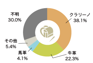 サイズでは、「A4フラットサイズ」が2020年の調査よりも3.1%増加して、70.4%となりました。素材については、38.1%がクラリーノで、牛革が22.3%と続いています。